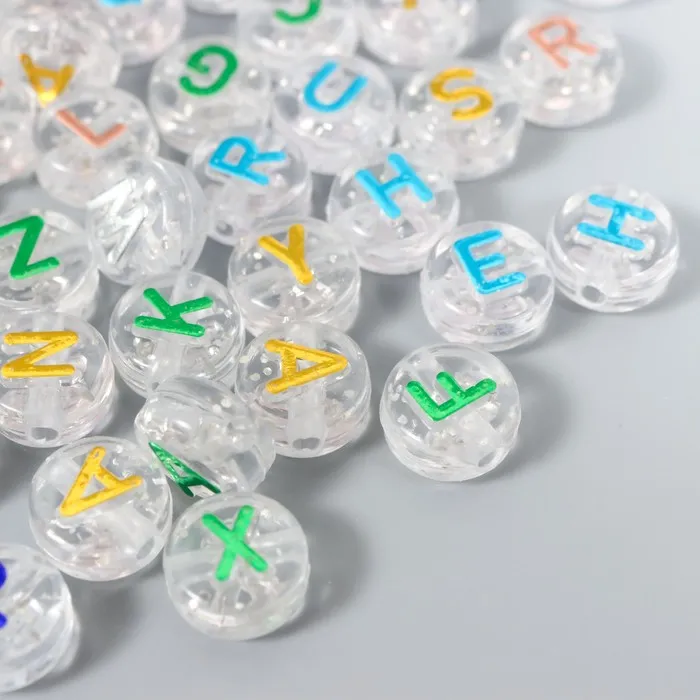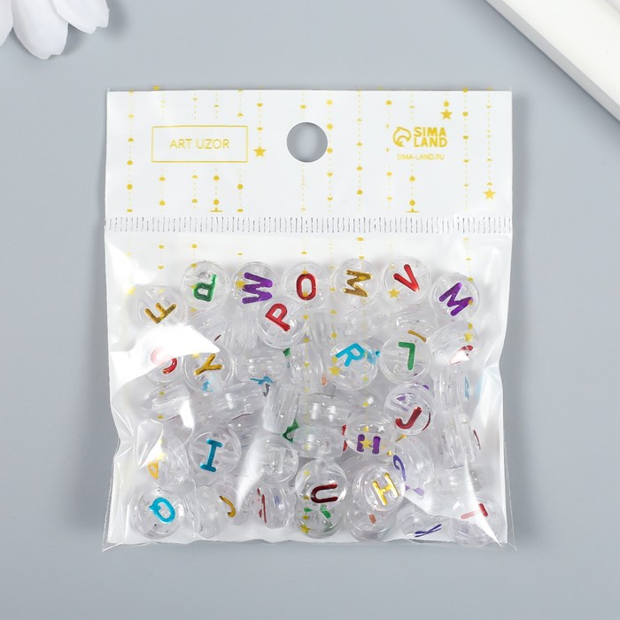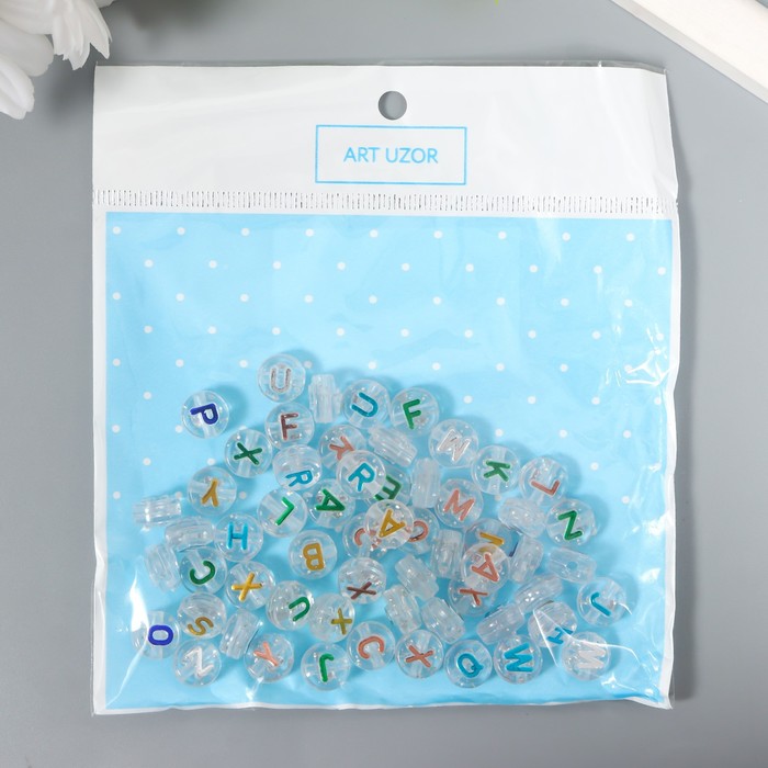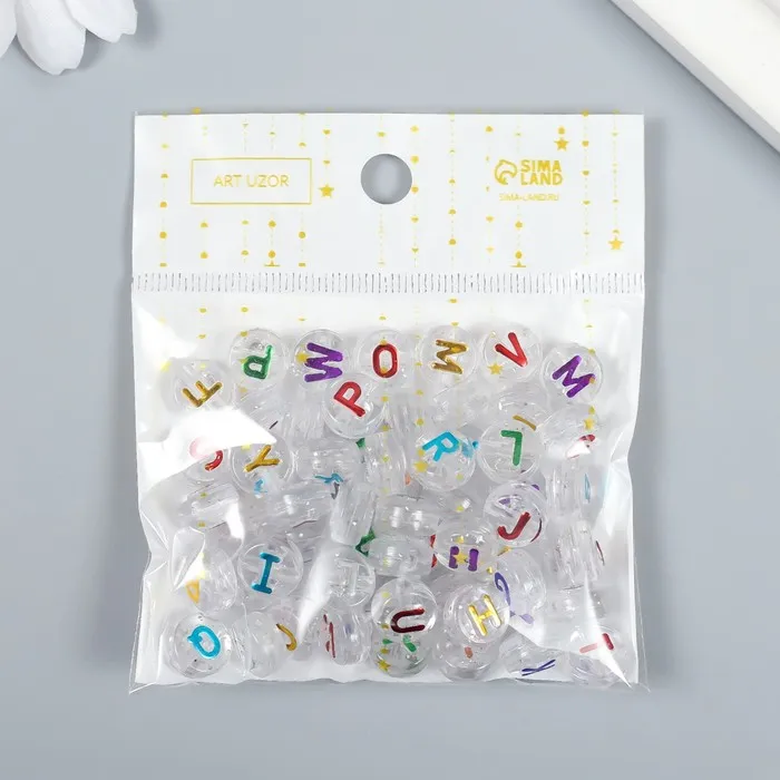 Бусины для творчества пластик «Английские цветные буквы», прозрачные, набор 20 г, 0.6×1×1 см — Характеристики