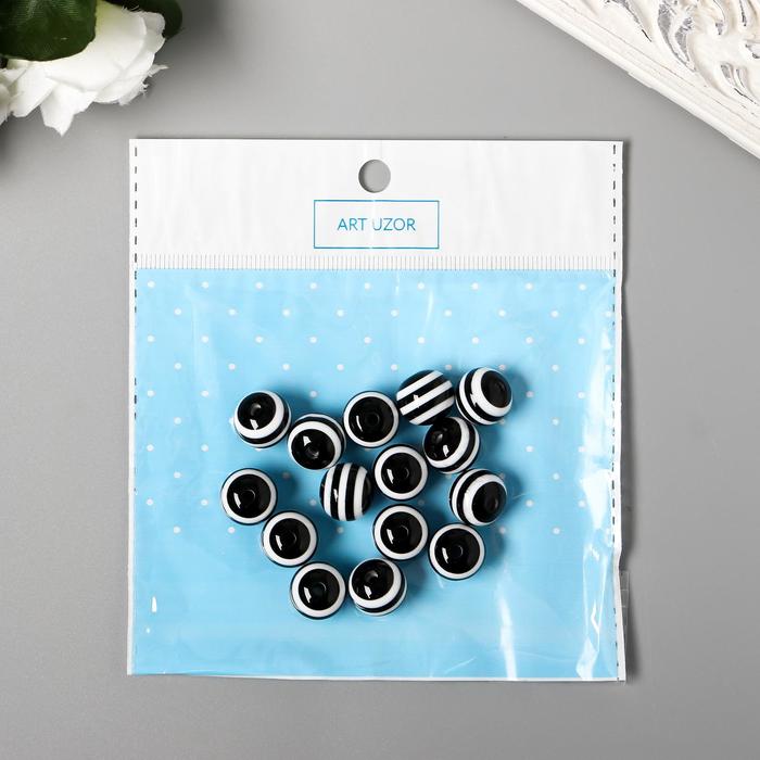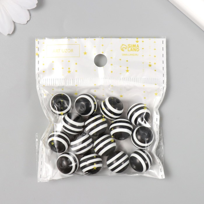 Бусины для творчества пластик «Чёрно-белый полосатый шарик» набор 15 шт. 1.4×1.4×1.4 см — Характеристики