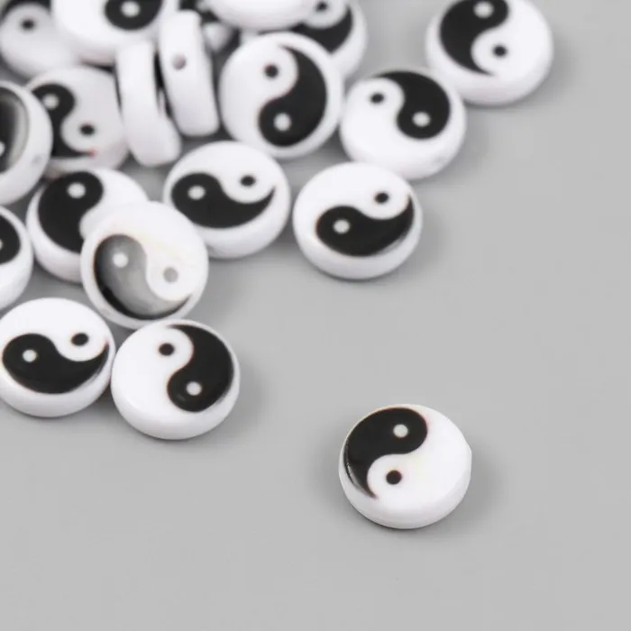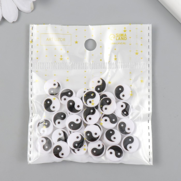Бусины для творчества пластик «Инь-ян», бело-чёрный, набор 31 шт., 0.4×1.1×1.1 см — Характеристики