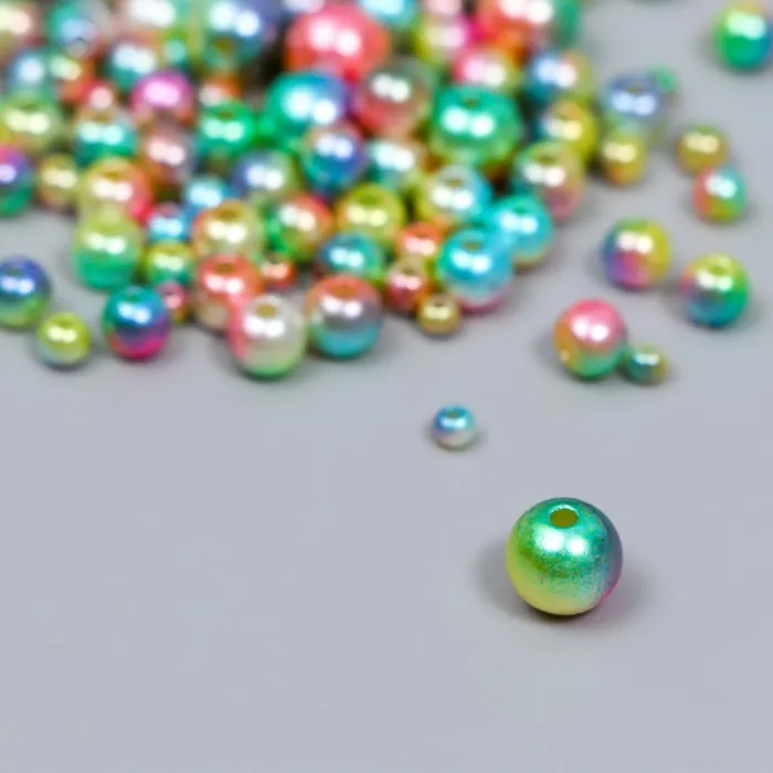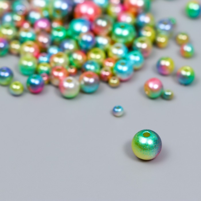 Бусины для творчества пластик «Круглые. Градиент. Русалка зелёное ассорти», d=3-8 мм, набор 10 г — Характеристики