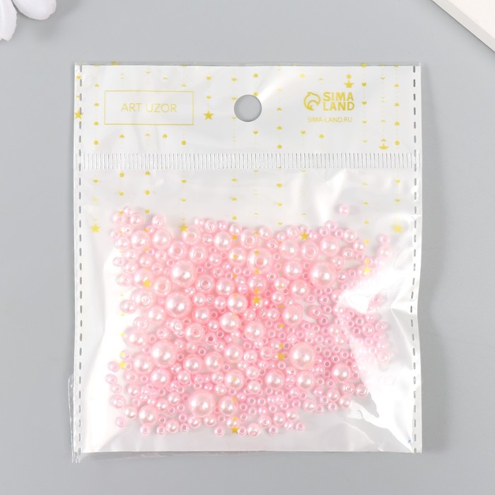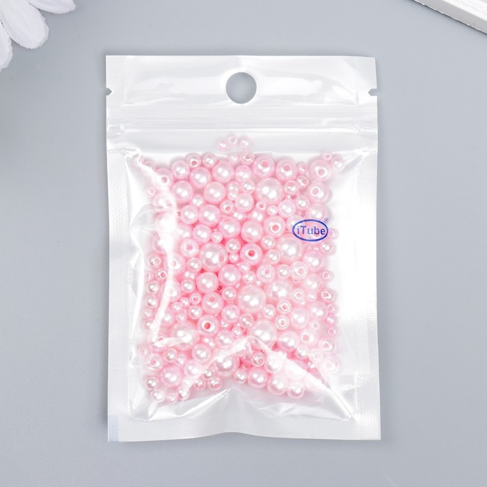 Бусины для творчества пластик «Круглые. Розовая пудра», d=3-8 мм, набор 10 г — Характеристики