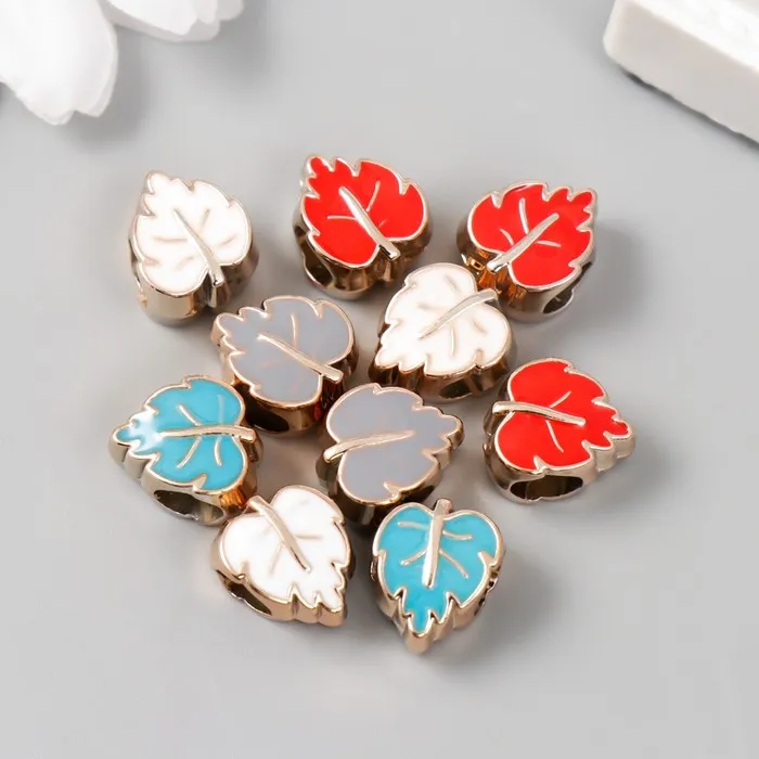 Бусины для творчества пластик «Лист яркая серединка», набор 10 шт., 1×1 см, МИКС — Характеристики