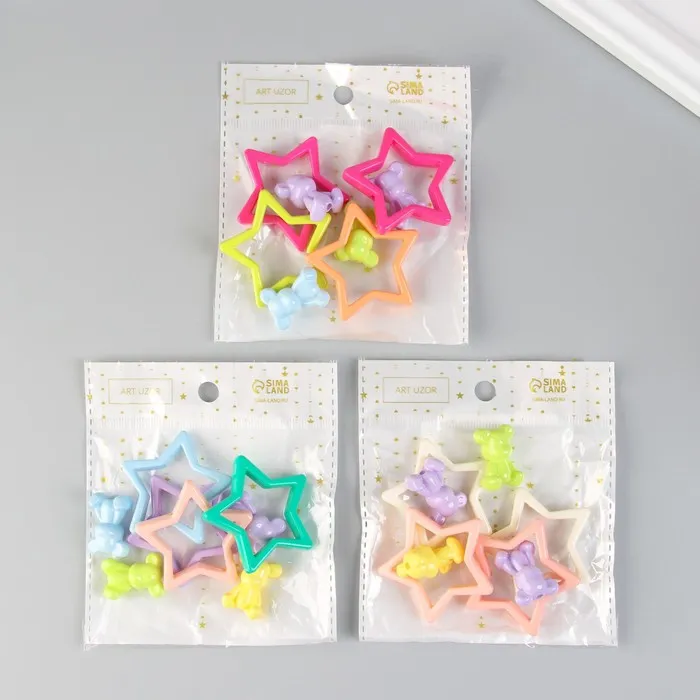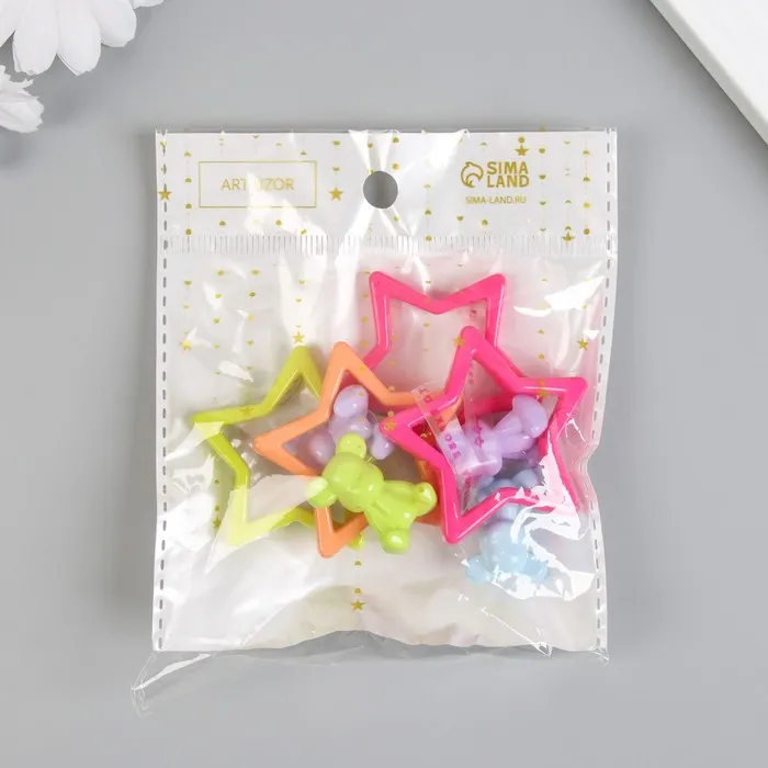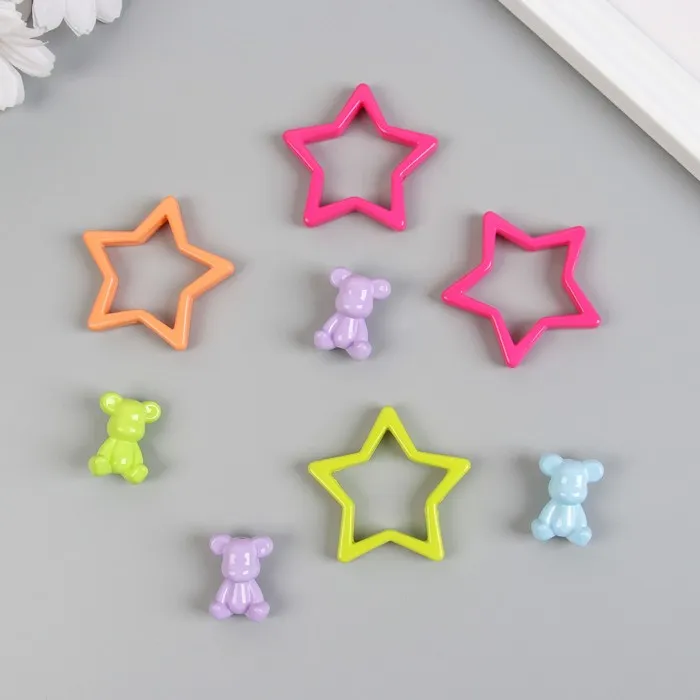 Бусины для творчества пластик «Медведь и звезда. Конструктор», набор 4 пары 4.4×4.4×0.7 см — Характеристики