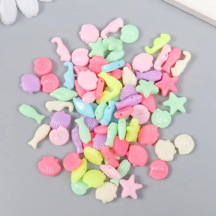 Бусины для творчества пластик «Морские. Пастельные тона», набор 78 шт., 15 г, 1×1 см — Характеристики