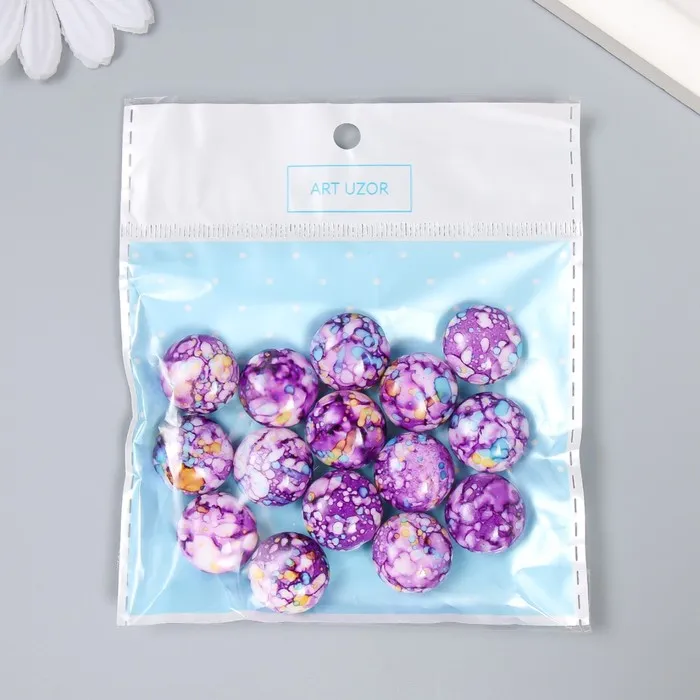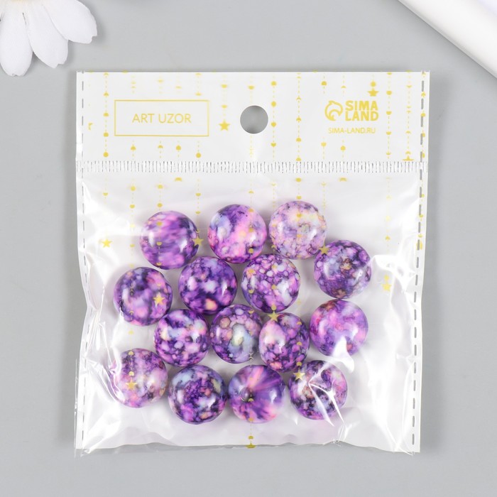 Бусины для творчества пластик «Мраморные. Фиолетовый», набор 15 шт., 1.7×1.7×1 см — Характеристики