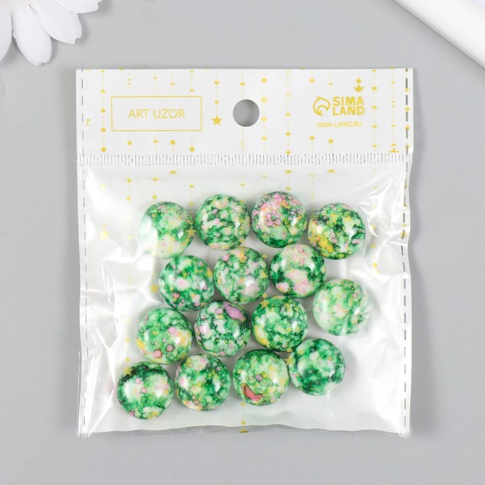 Бусины для творчества пластик «Мраморные. Зелёный», набор 15 шт., 1.7×1.7×1 см — Характеристики