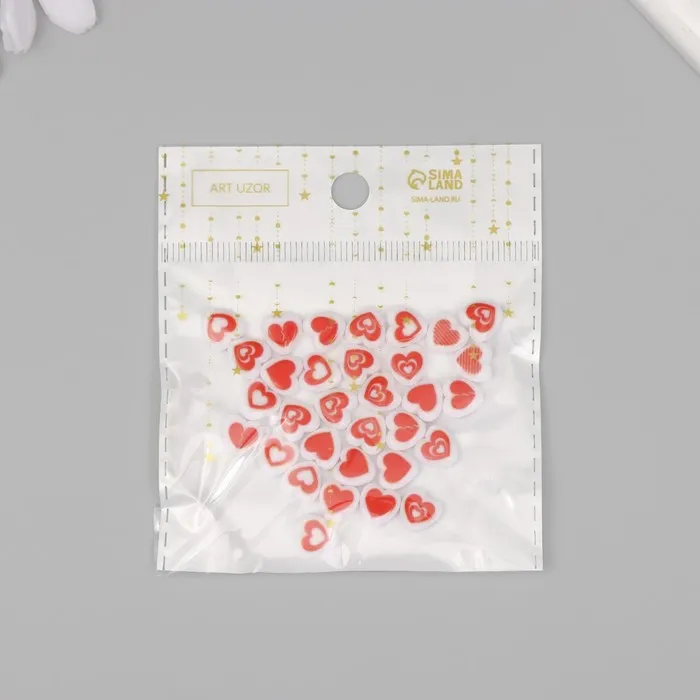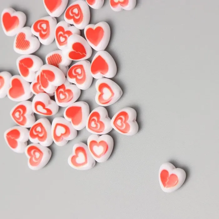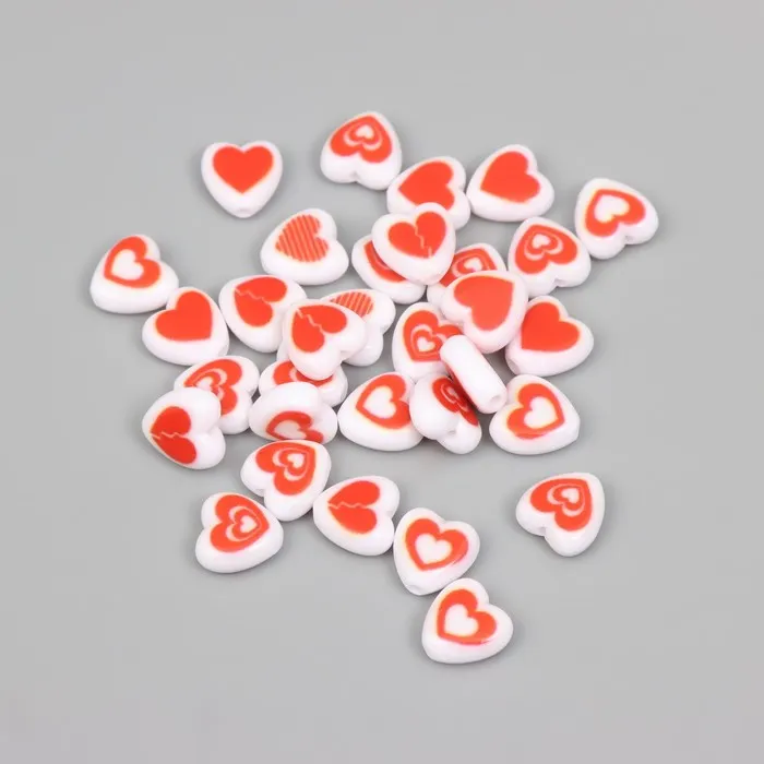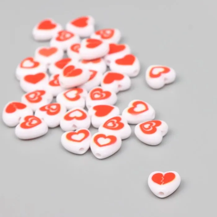 Бусины для творчества пластик «Нарисованное сердце», бело-красные, набор 30 шт., 0.8×0.4 см — Характеристики