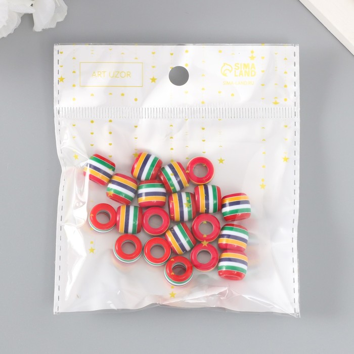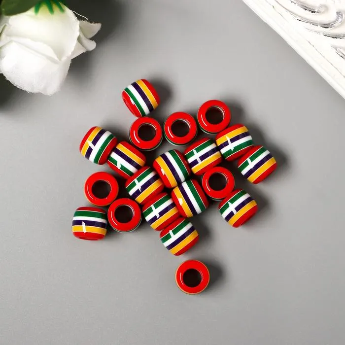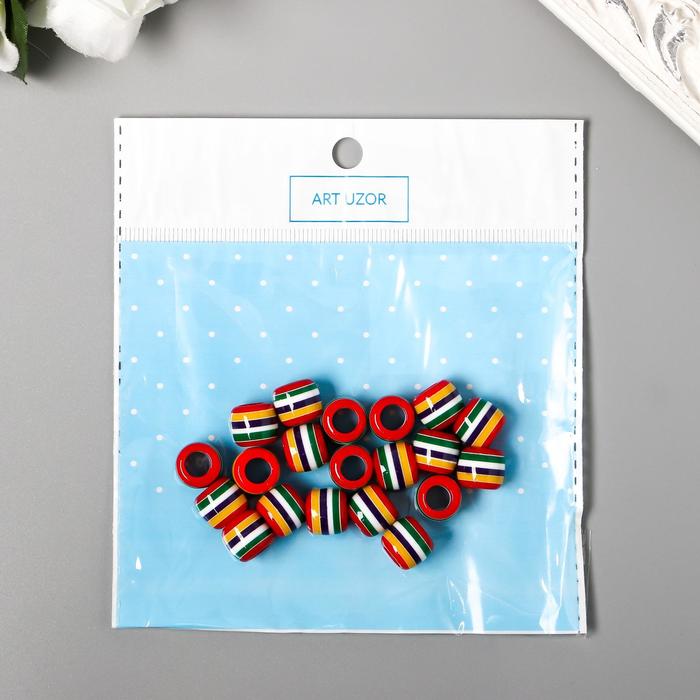 Бусины для творчества пластик «Полосатый цилиндр с красным», набор 20 шт., 1×1.2×1.2 см — Характеристики