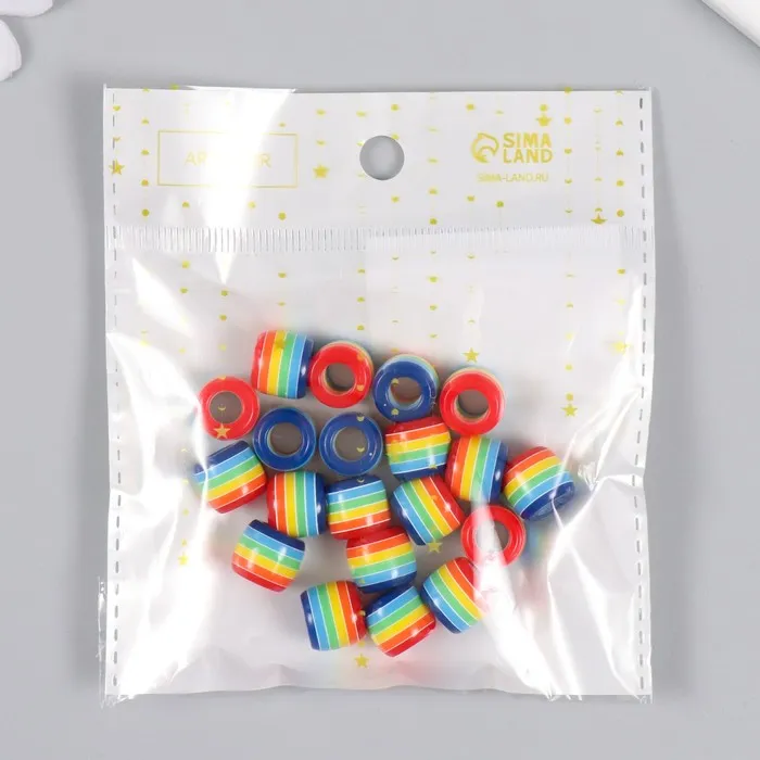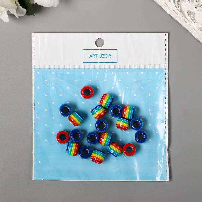 Бусины для творчества пластик «Полосатый цилиндр с синим», набор 20 шт., 1×1.2×1.2 см — Характеристики