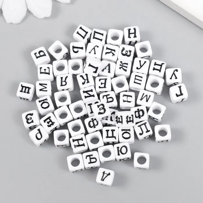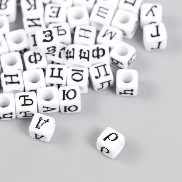 Бусины для творчества пластик «Русские буквы на кубике», набор 10 г, 0.6×0.6 см — Характеристики