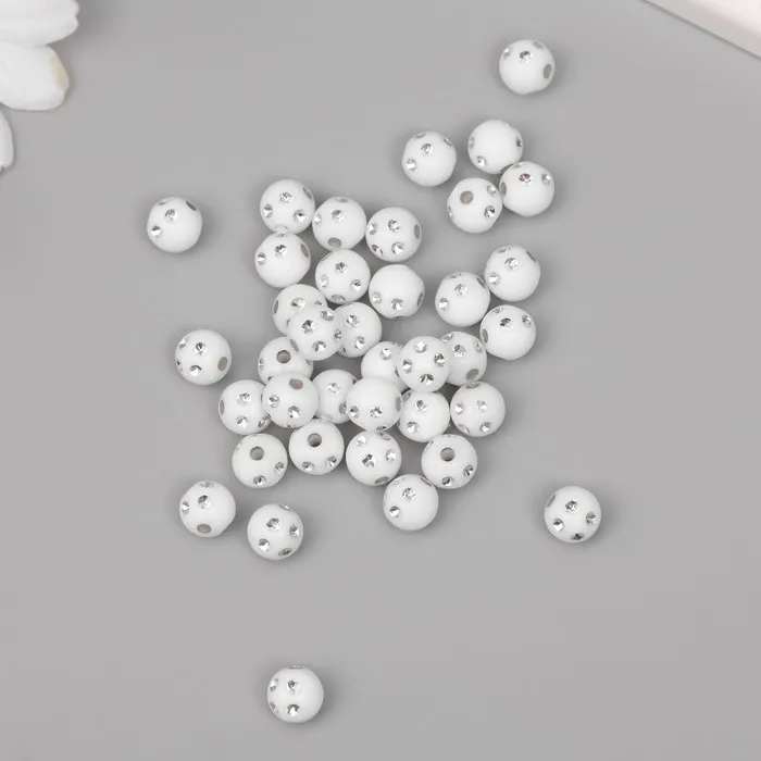 Бусины для творчества пластик «Шар со стразами», бело-серебристые, набор 20 г, 0.8×0.8×0.8 см