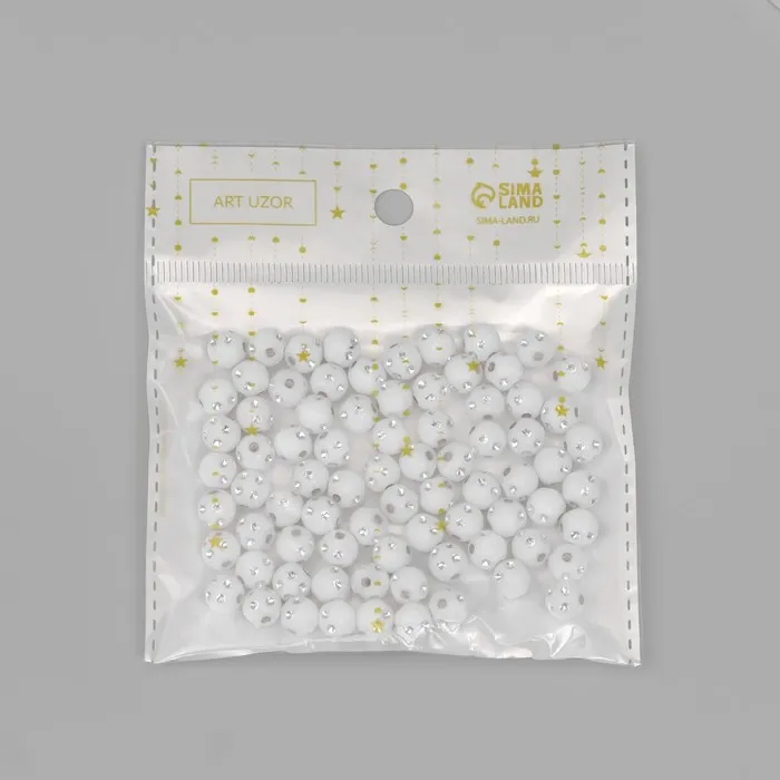 Бусины для творчества пластик «Шар со стразами», бело-серебристые, набор 20 г, 0.8×0.8×0.8 см — Характеристики