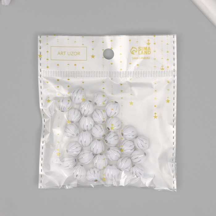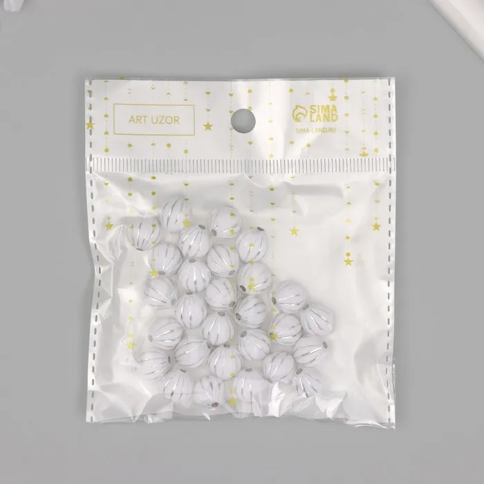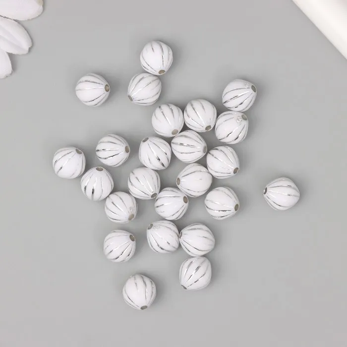Бусины для творчества пластик «Шар вытянутый», бело-серебристые, набор 20 г, 1.2×1×1 см — Характеристики