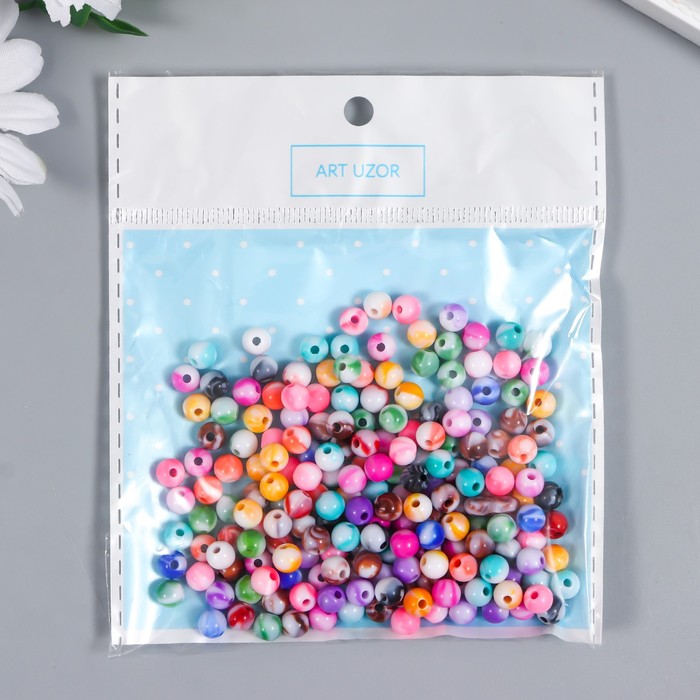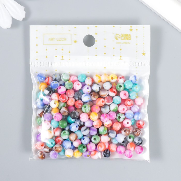 Бусины для творчества пластик «Шарики мраморные разводы», набор 20 г, d=0.6 см