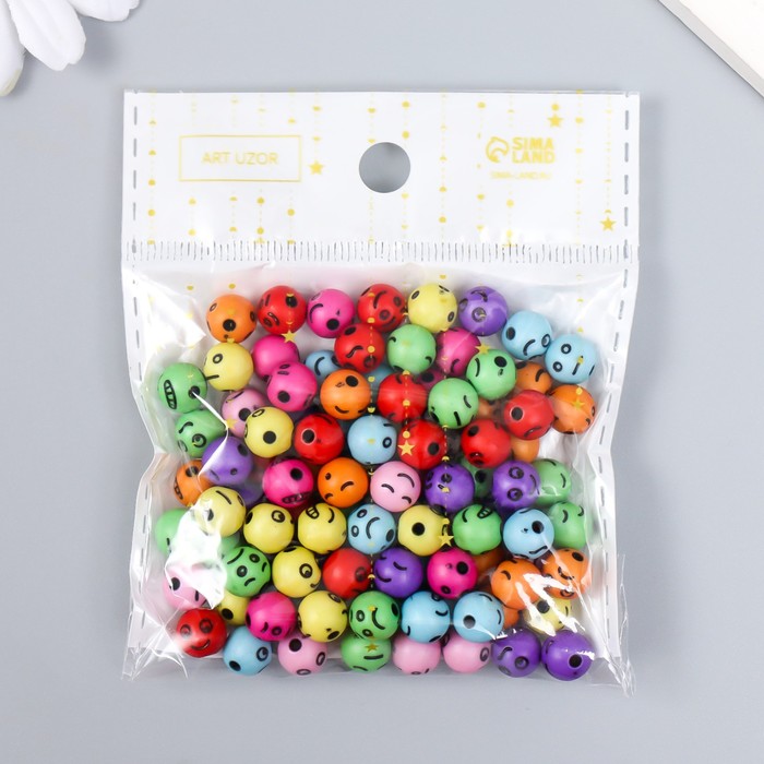 Бусины для творчества пластик «Смайлик», набор 100 шт., 0.6×0.6 см
