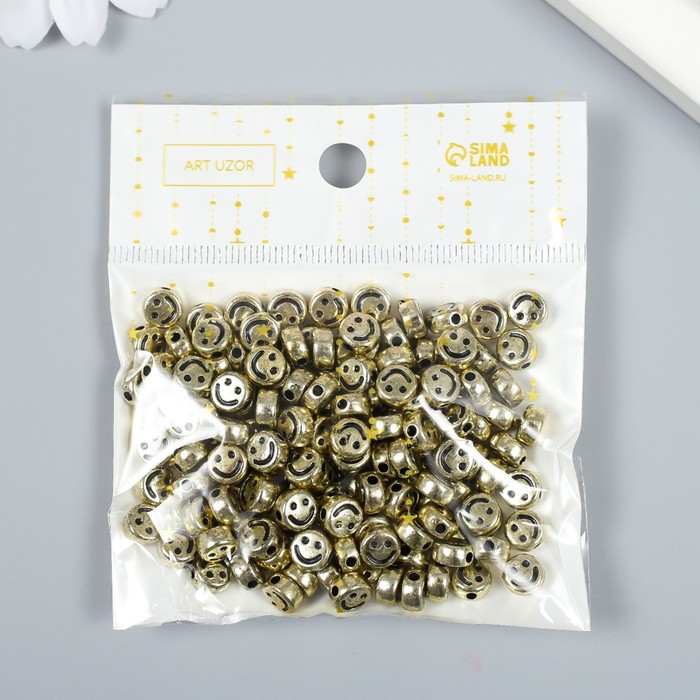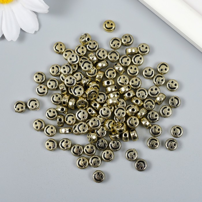 Бусины для творчества пластик «Смайлик. Плоский», золото, набор 20 г, 0.7×0.4 см — Характеристики