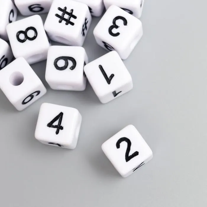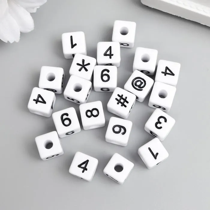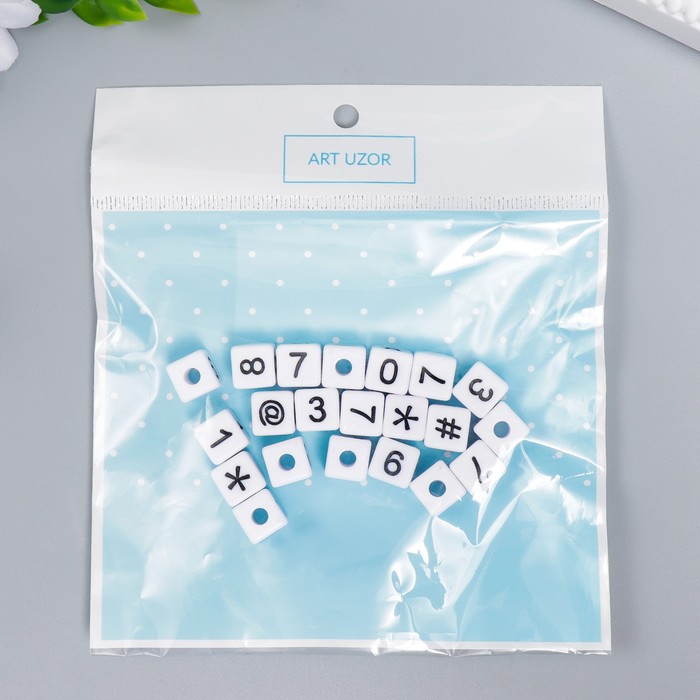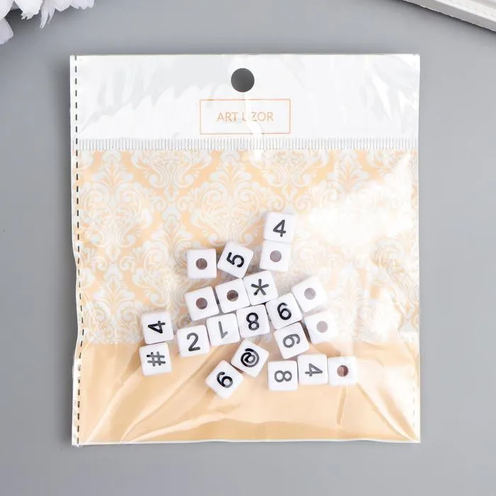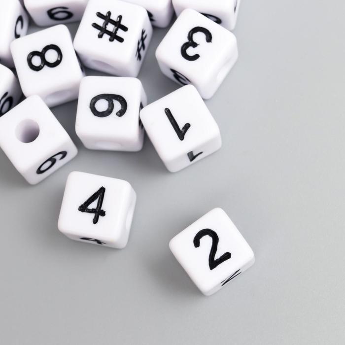 Бусины для творчества пластик "Циферки на кубике" белые набор 20 гр 1х1 см — Характеристики