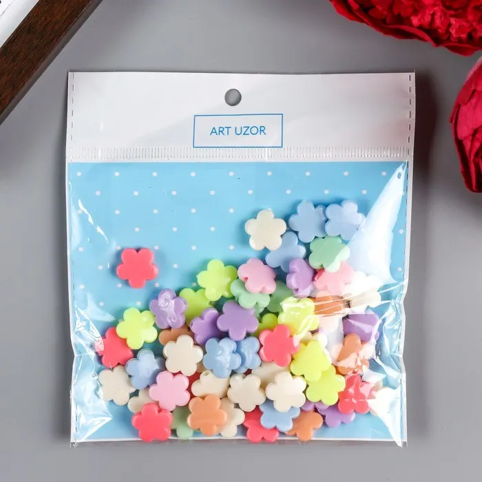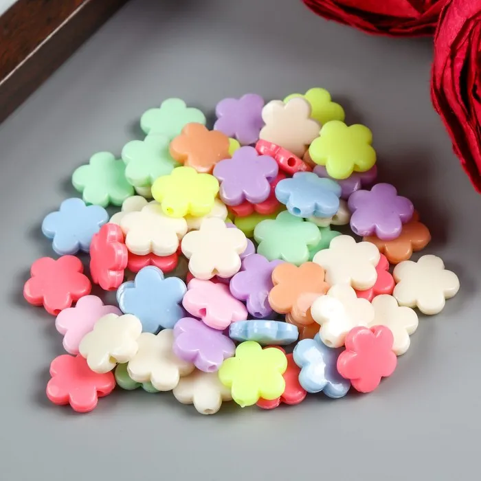 Бусины для творчества пластик «Цветочки - неоновые тона», набор 60 шт., 1.5×1.5×0.4 см — Характеристики