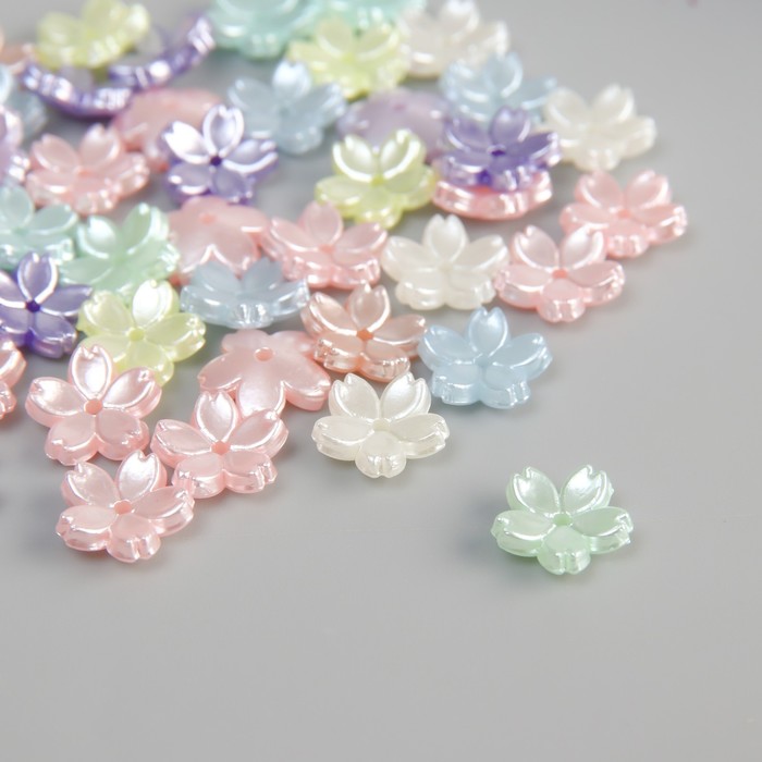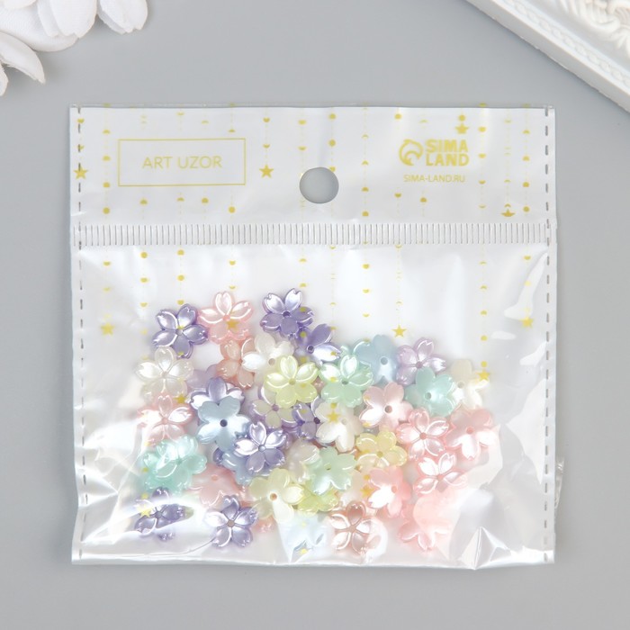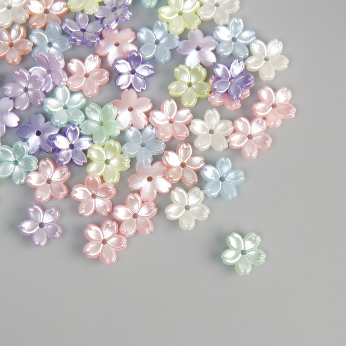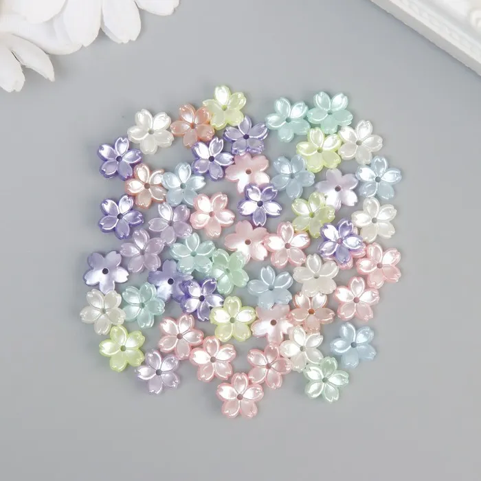Бусины для творчества пластик "Цветочки"цветной перламутр набор 50 шт 1х1х0,3 см — Характеристики