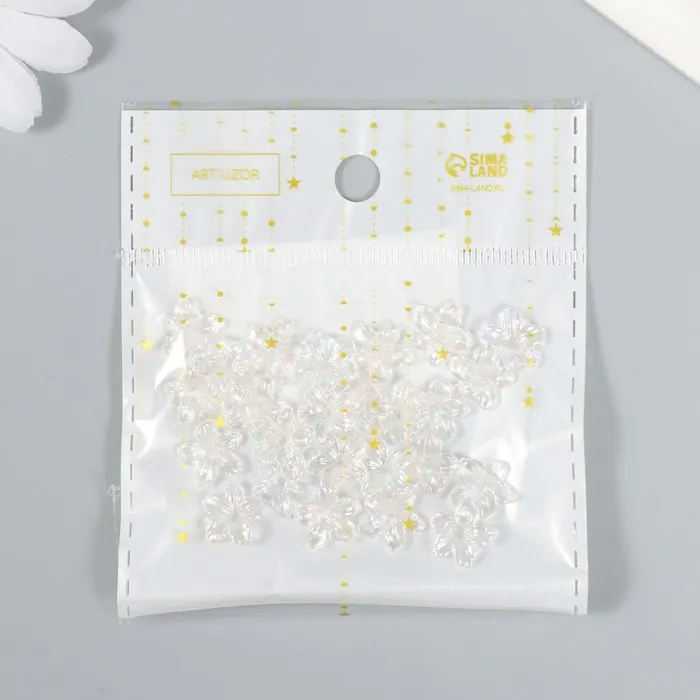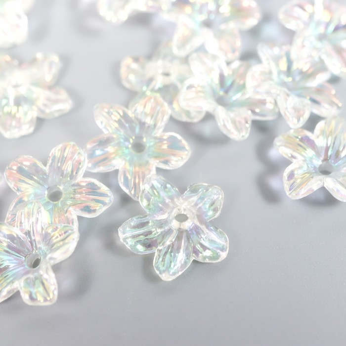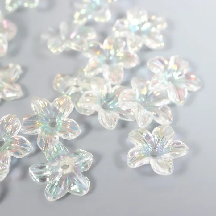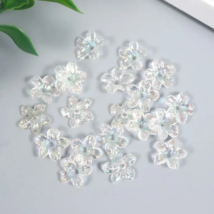 Бусины для творчества пластик «Цветок» набор 25 шт. прозрачный перламутр 1.1×1.1 см — Характеристики
