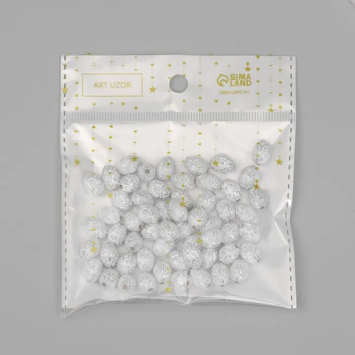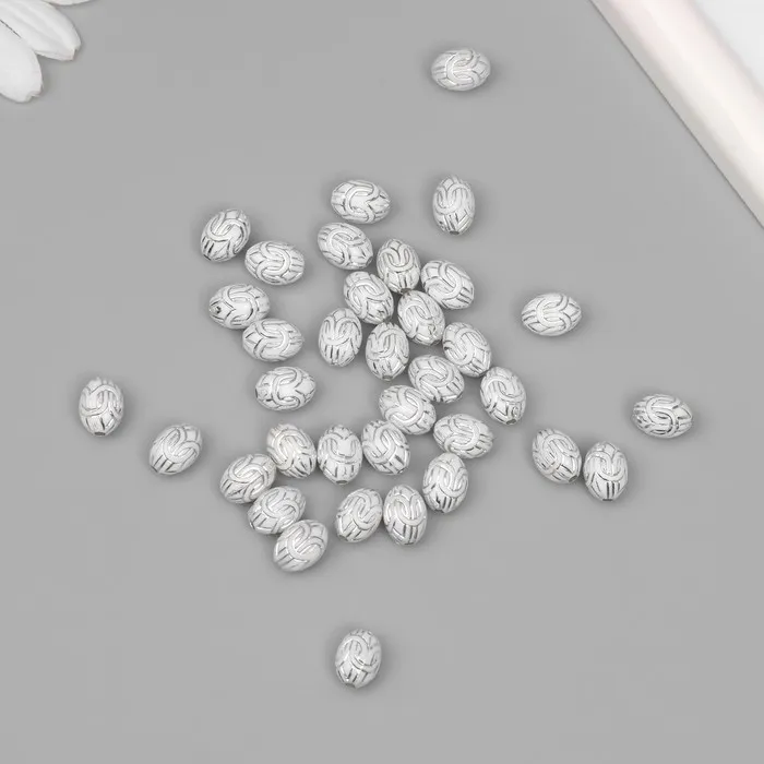 Бусины для творчества пластик «Восточный узор», бело-серебристые, набор 20 г, 1×0.8×0.8 см — Характеристики