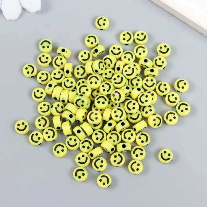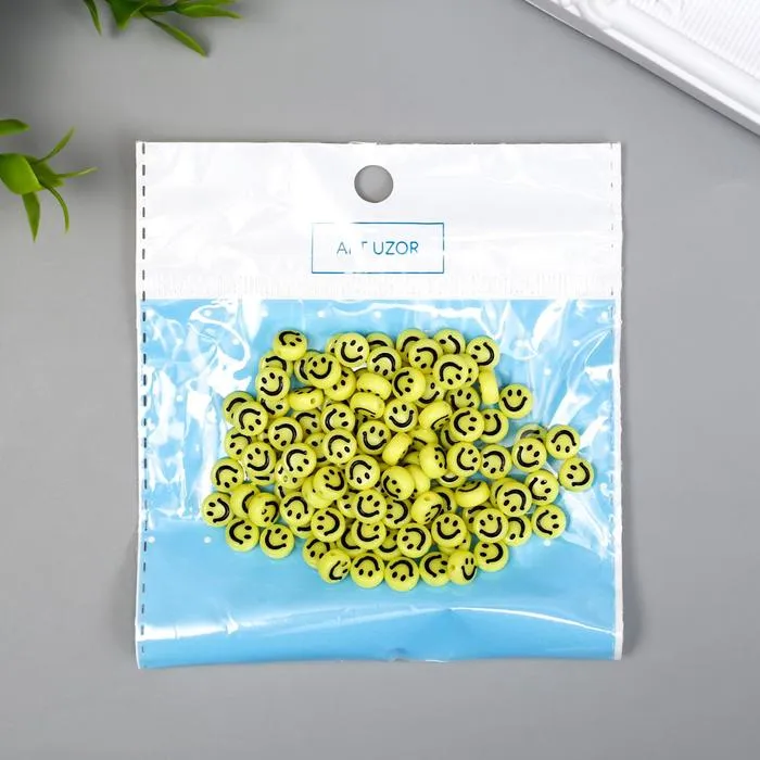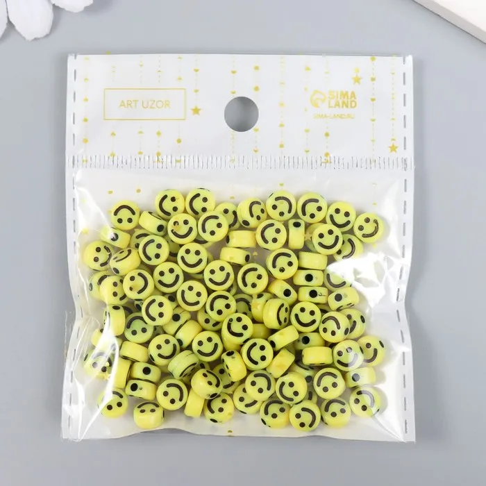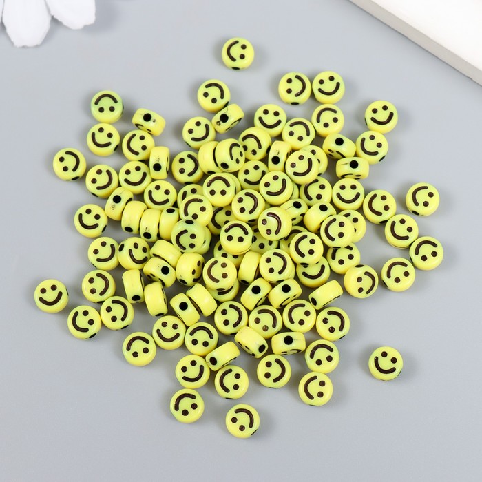 Бусины для творчества пластик «Жёлтые кружочки со смайлами», набор 15 г, 0.4×0.7×0.7 см — Характеристики