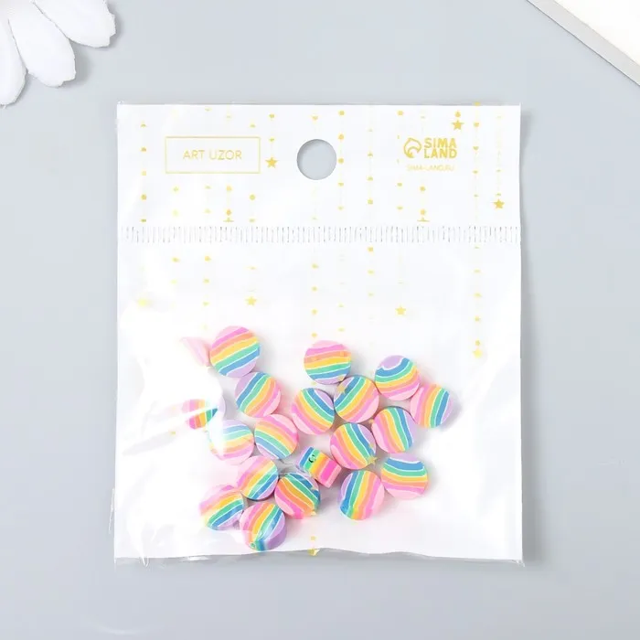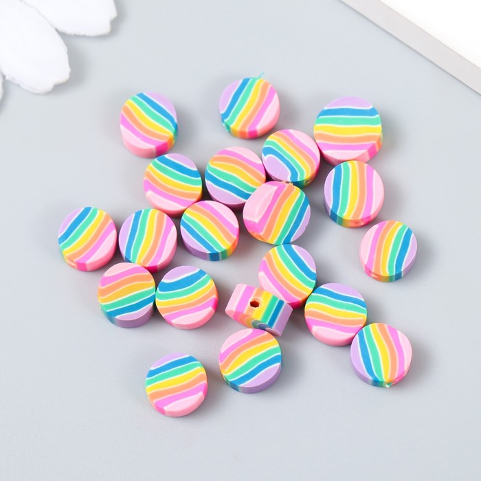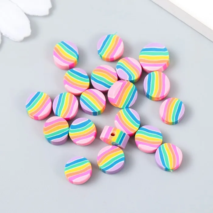 Бусины для творчества PVC «Кружочки радуга», набор 20 шт., 0.5×1×1 см — Характеристики