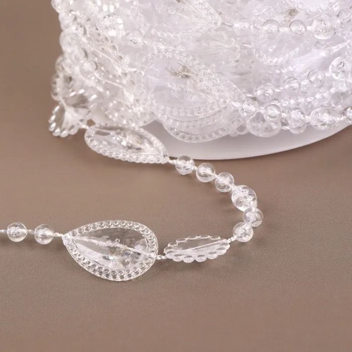Кристально-прозрачные бусины на нитях — универсальный декор для создания воздушных композиций. Крупные 15-миллиметровые сферы на прочной основе длиной 9 метров пропускают свет, создавая эффект стеклянных капель. Идеальны для праздничного оформления и дизайнерских проектов.