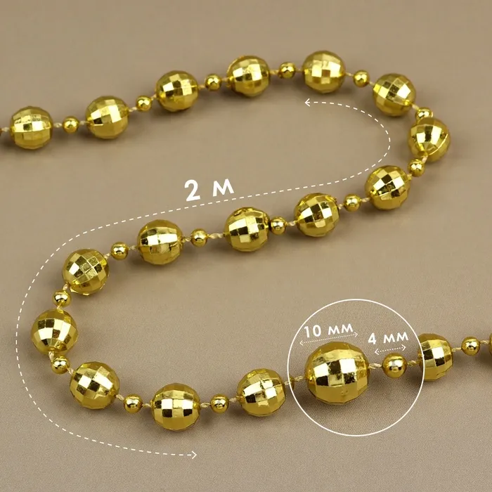 Золотистые переливы этих бусин создают атмосферу праздника, напоминая о сверкающем диско-шаре. Каждый элемент диаметром 10 мм и 4 мм тщательно подобран, чтобы создать эффект мерцающего потока, который преобразит любое пространство.