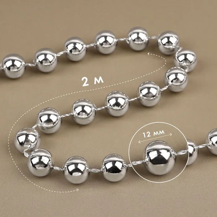 Серебряный блеск для вашего творчества! Гибкие бусы из пластиковых бусин — готовое решение для декора, и дизайнерских проектов. Гладкие серебристые шарики на прочной нити легко режутся, комбинируются с другими материалами и сохраняют форму даже в сложных композициях.