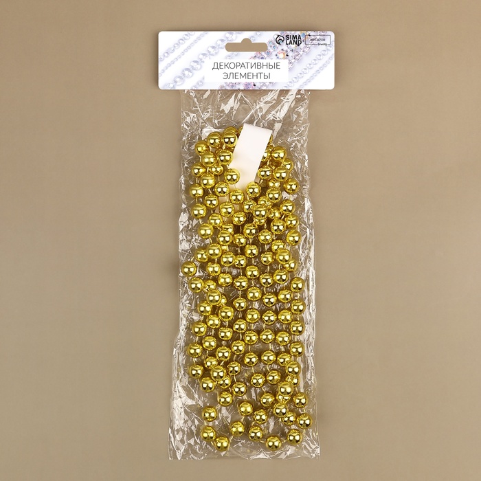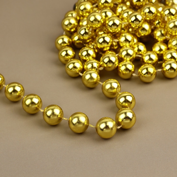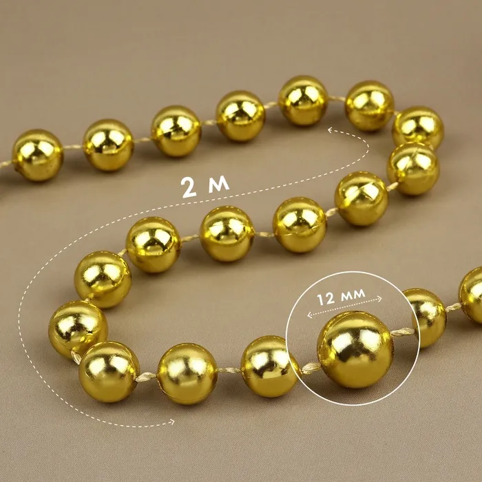 Золотые бусины на нити — универсальный декор для праздничного оформления, поделок своими руками и дизайнерских проектов. Готовые гирлянды переливаются теплым металлическим блеском, добавляя интерьеру или костюму эффект дорогой отделки.
