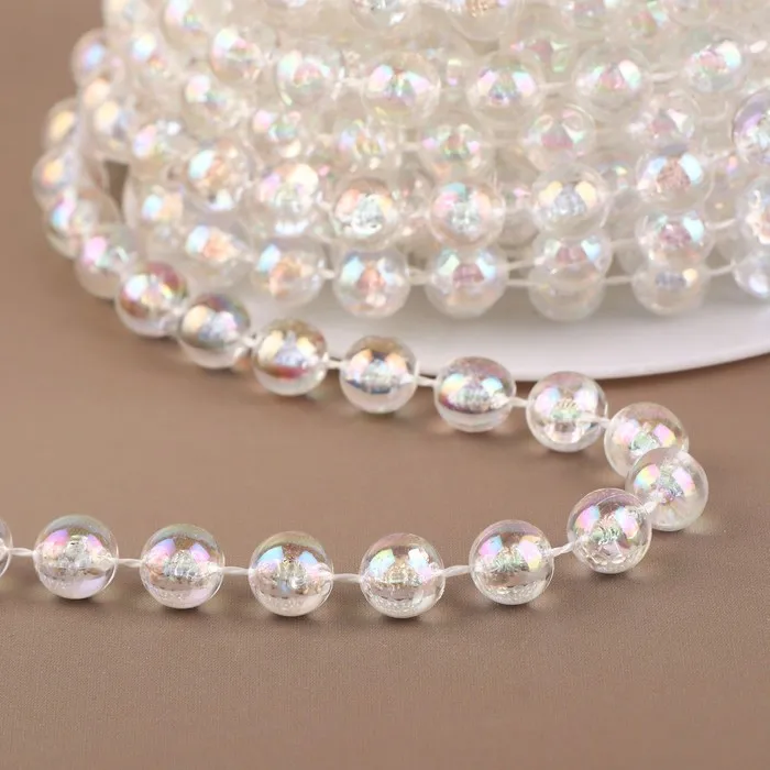 Эти прозрачные бусы с голографическим эффектом станут универсальным аксессуаром для создания праздничной атмосферы. Идеально подходят для украшения ёлки, интерьера, фотозон, подарочных упаковок и новогодних композиций. Благодаря прозрачности и переливающемуся покрытию изделия визуально добавляют глубину и свет.
