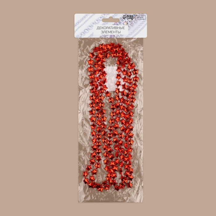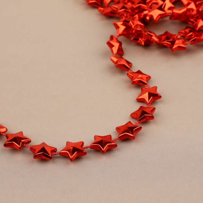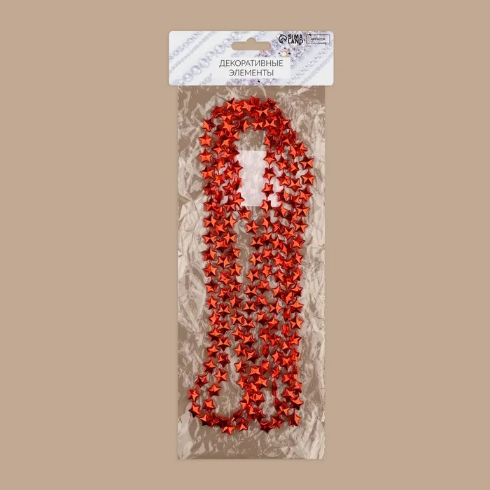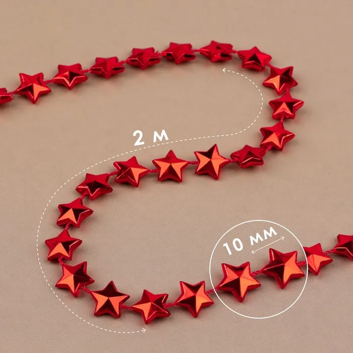 Яркие красные бусины в форме звёзд на прочной нити — классическое новогоднее украшение с современным акцентом. Гирлянда длиной 2 метра с пластиковыми элементами диаметром 10 мм создаёт праздничное настроение и добавляет традиционный колорит в интерьер. Идеально подходит для оформления ёлки, дверных проёмов или создания тематических композиций.