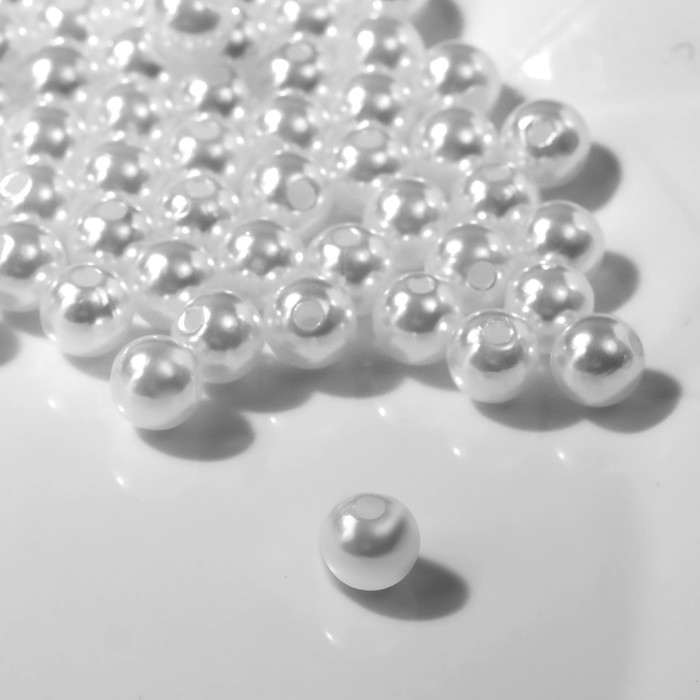 Бусины №8 «Жемчуг» 0,8×0,8×0,8 см, (набор 100 шт.), отверстие сквозное, цвет белый