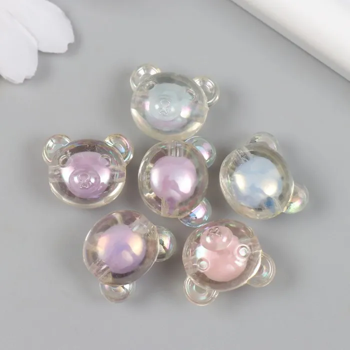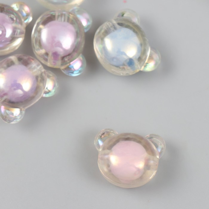 Бусины пластик «Голова медведя с цветной серединкой», глянец, 1.4×1.6×2 см, МИКС