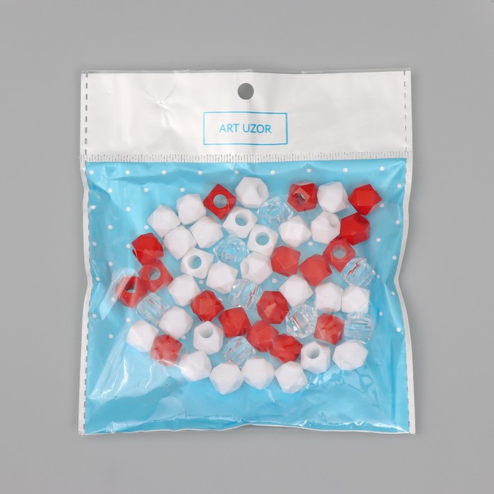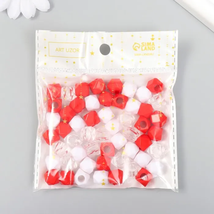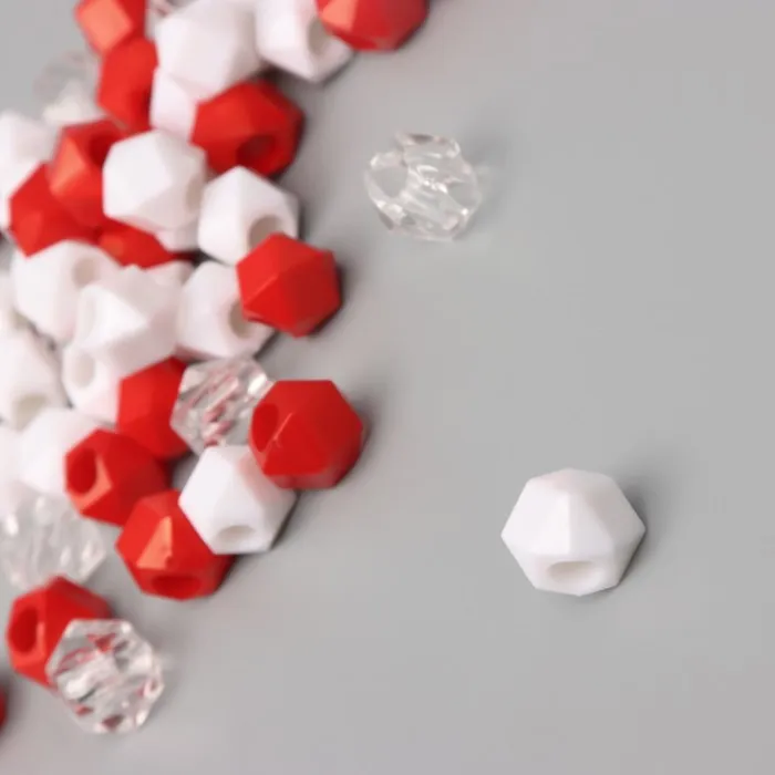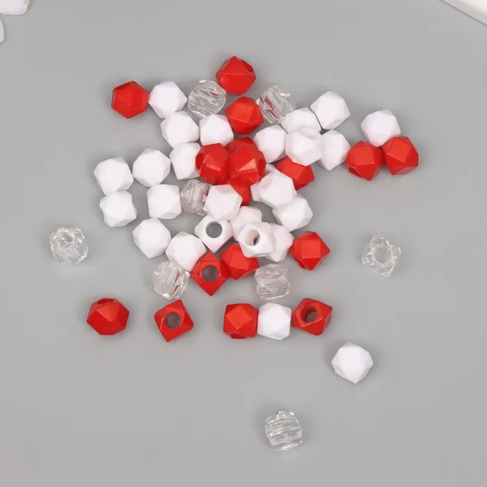Бусины пластик «Кристалл многогранник. Красный, белый, прозрачный», набор 30 г, 1×1×1 см — Характеристики
