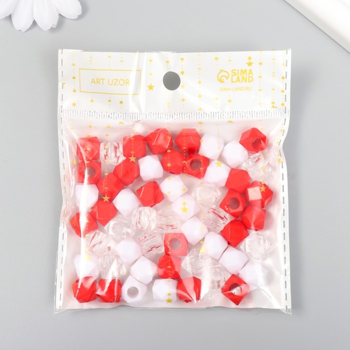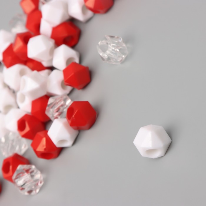 Бусины пластик «Кристалл многогранник. Красный, белый, прозрачный», набор 30 г, 1×1×1 см
