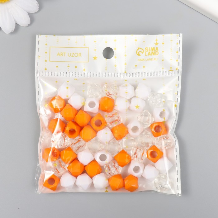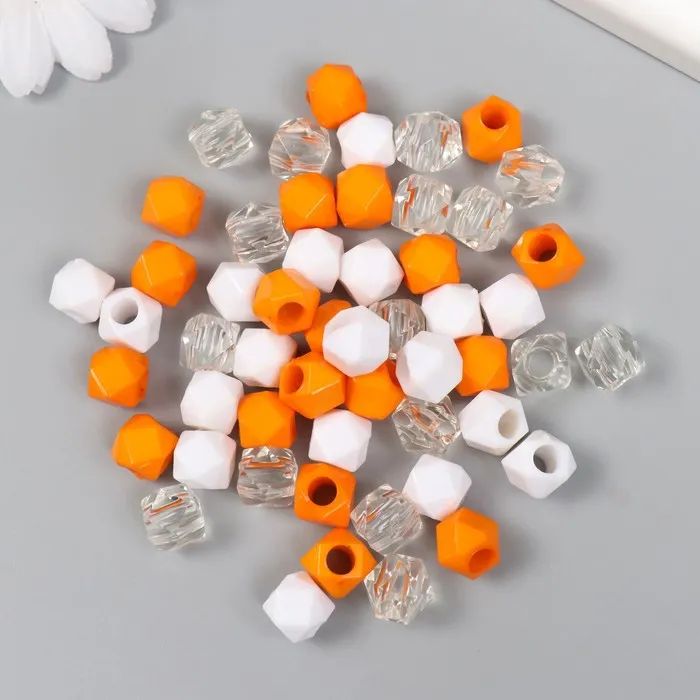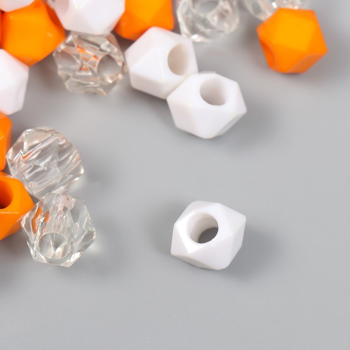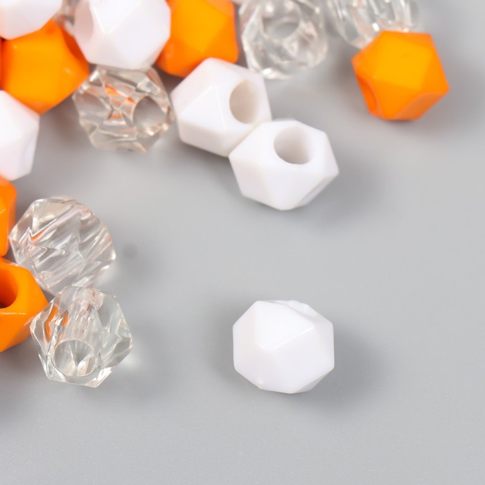 Бусины пластик «Кристалл многогранник. Оранж, белый, прозрачный», набор 30 г, 1×1×1 см