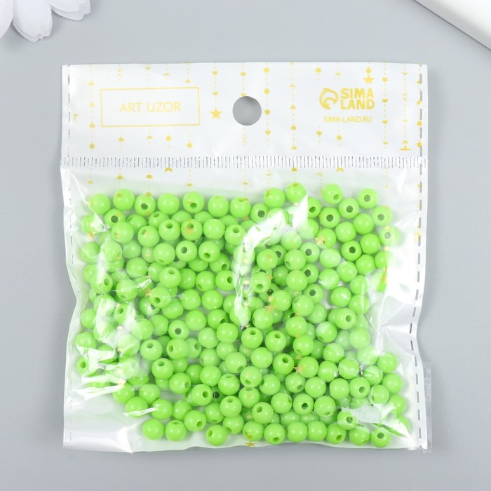 Бусины пластик «Лайм», глянец, набор 25 г, d=0.6 см