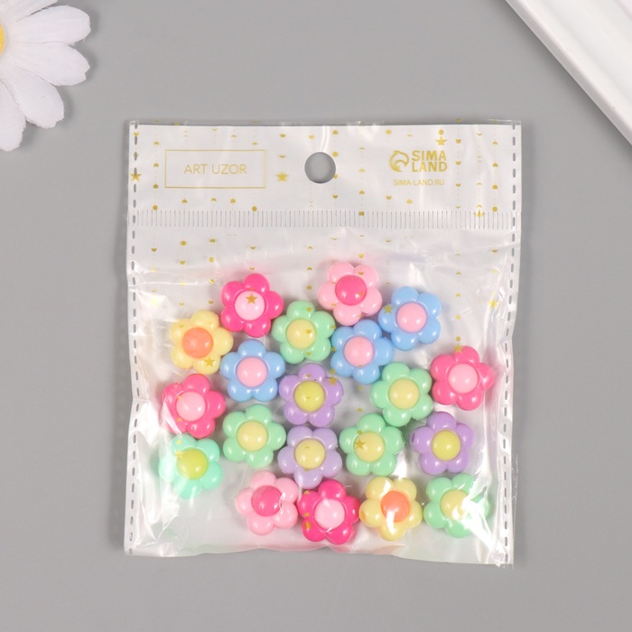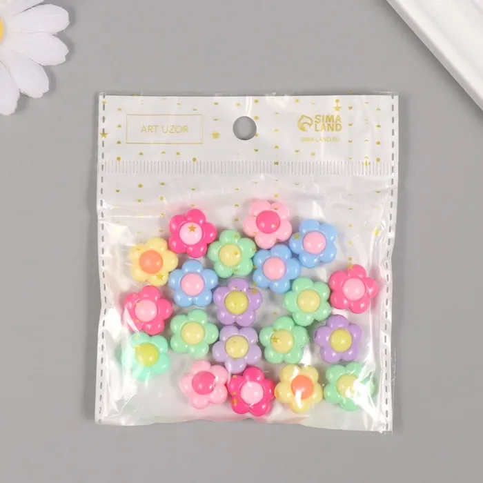 Бусины пластик «Летние цветные ромашки», МИКС, набор 20 г, 1.6×1.6×0.8 см — Характеристики