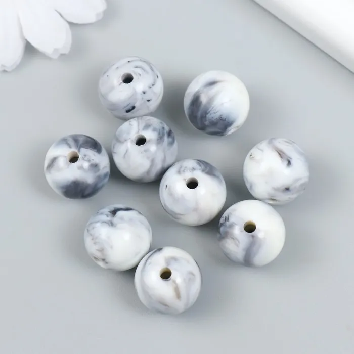 Бусины пластик «Разводы краски. Серые», набор 20 г, d=1.6 см