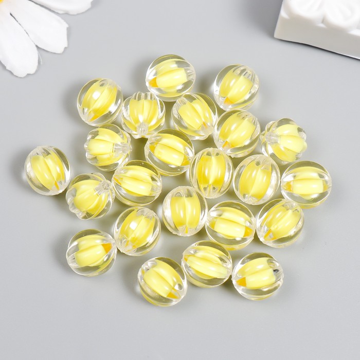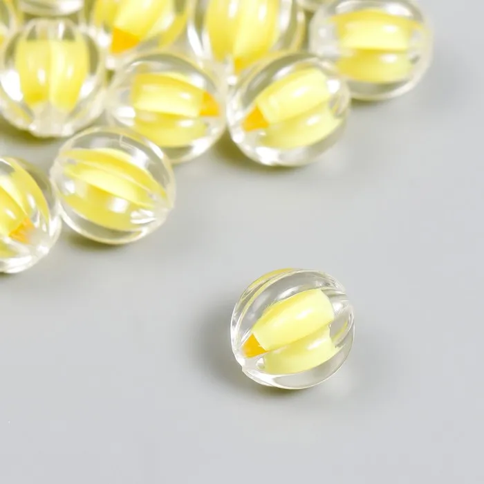 Бусины пластик «Шар ребристый - внутренний жёлтые», набор 20 г, 1.2×1.1 см