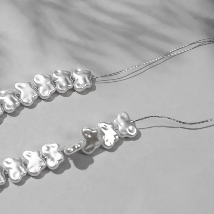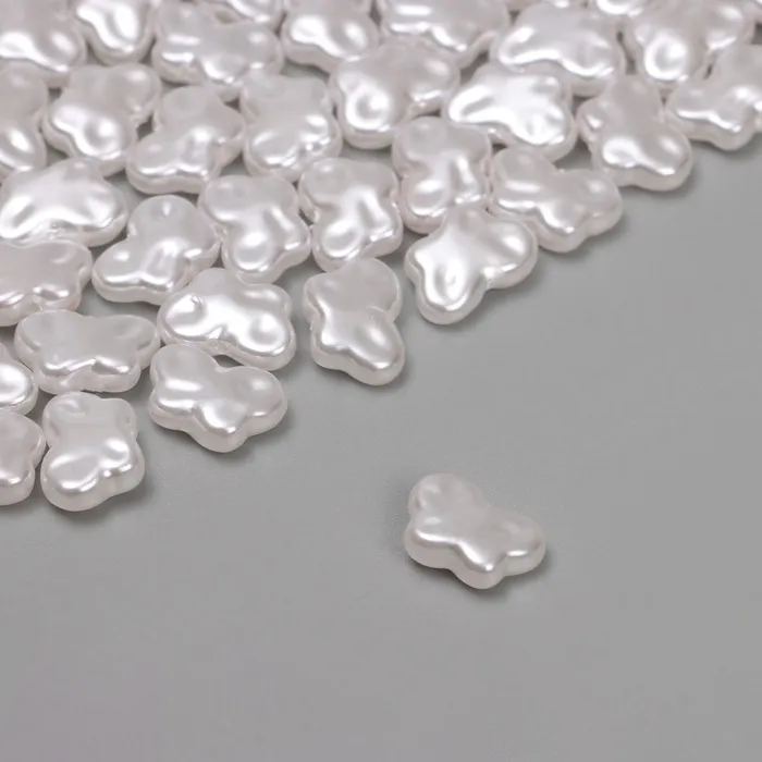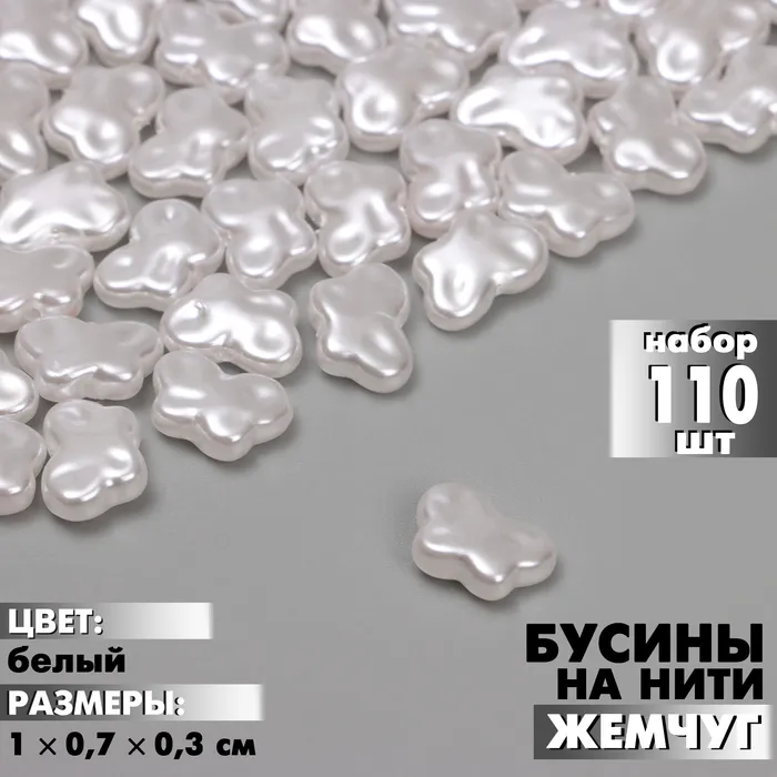 Бусины пластиковые на нити «Бабочка», 1×0.7×0.3см, набор 110 шт, цвет белый — Характеристики