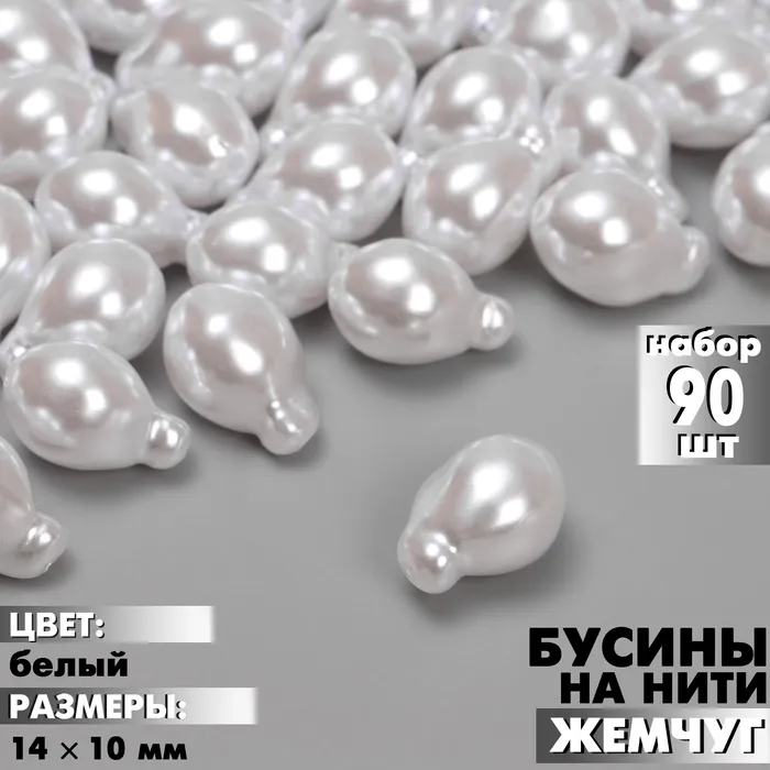 Бусины пластиковые на нити «Жемчуг», 14×10 мм, набор 90 шт, цвет белый — Характеристики