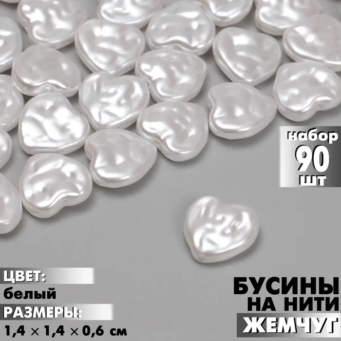 Бусины пластиковые на нити «Жемчуг», 1.4×1.4×0.6 см, набор 90 шт, цвет белый — Характеристики
