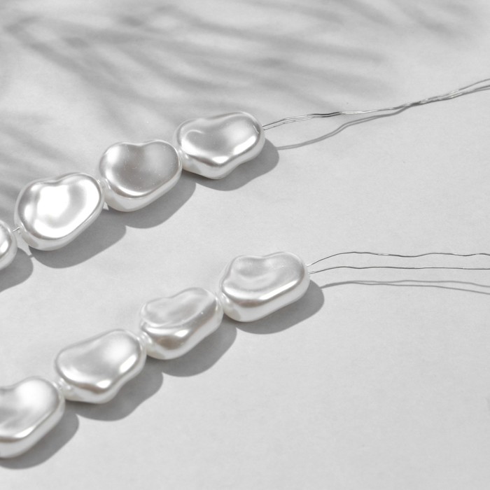 Бусины пластиковые на нити «Жемчуг», 1.6×1.2×0.6 см, набор 70 шт, цвет белый