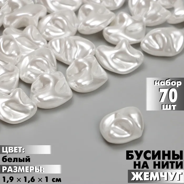 Бусины пластиковые на нити «Жемчуг», 1.9×1.6×1 см, набор 70 шт, цвет белый — Характеристики
