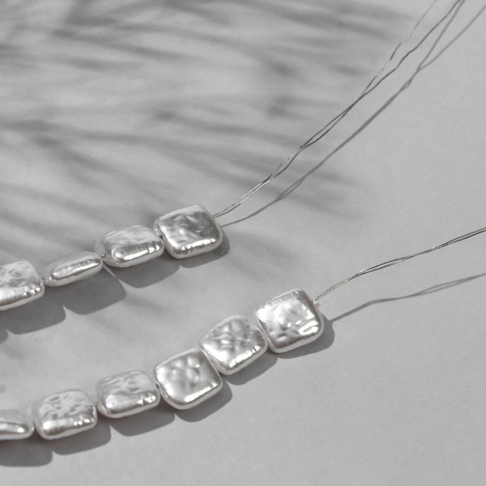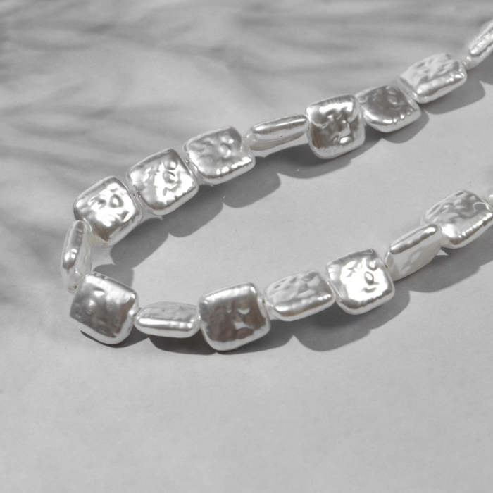 Бусины пластиковые на нити «Жемчуг», прямоугольник 1.1×1×0.5 см, набор 110 шт, цвет белый — Характеристики