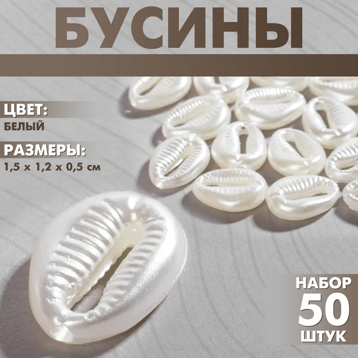 Бусины пластиковые «Ракушки», набор 50 шт, 1.5×1.2×0.5 см, цвет белый — Характеристики