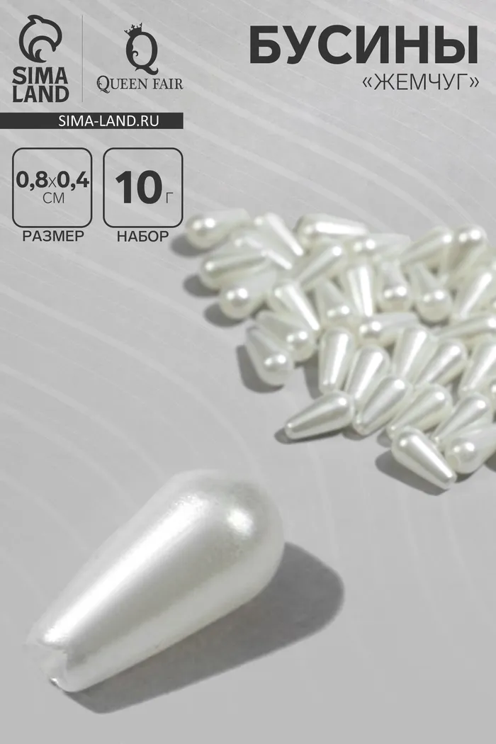 Бусины пластиковые «Жемчуг», капля 0.8×0.4×0.4см, набор 10г, цвет белый — Характеристики